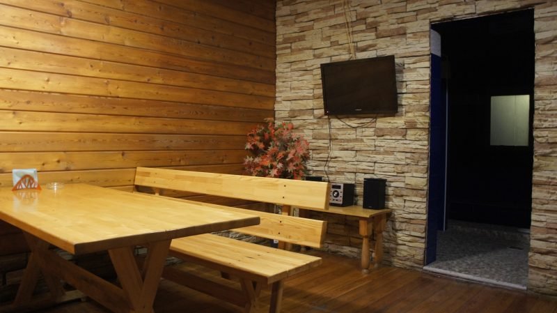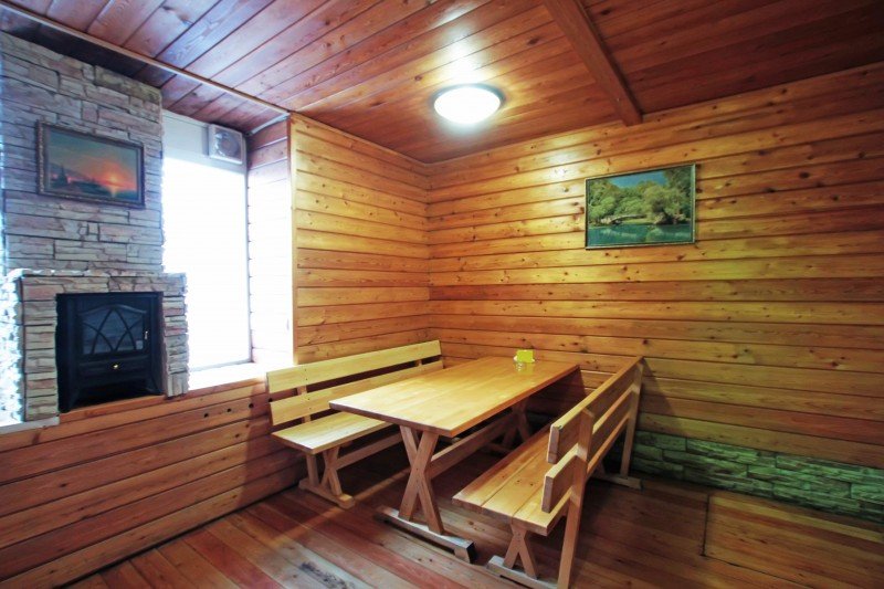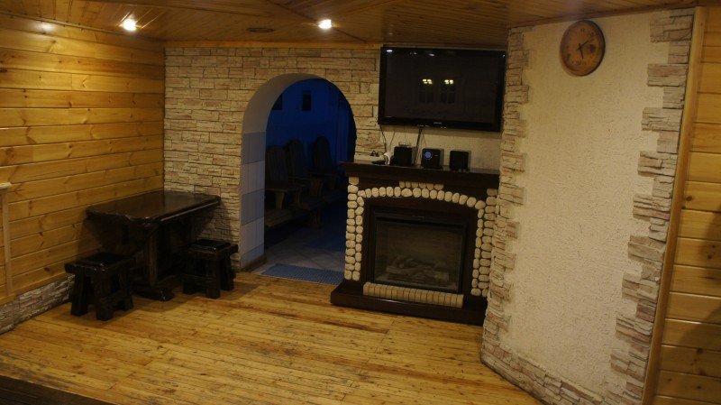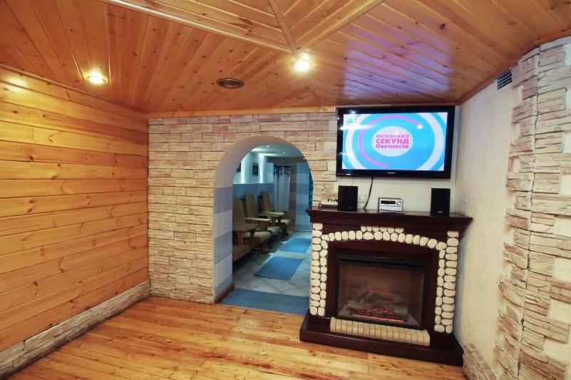 Не хочется в бассейн? Не проблема! Вместо этого можно посидеть в нашей комнате отдыха. Мы постарались создать здесь комфортный, стильный интерьер из максимально натуральных, экологичных материалов, выбрать мебель, которая будет одновременно удобной и приятной глазу. Надеемся, что он придется вам по душе! Для создания настроения у нас есть камин и караоке.